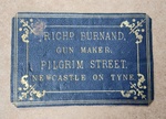 Burnand label Gold blocked black leather label from Richard Burnand of Newcastle upon Tyne. A small hole and a patch of wear but good overall condition. 5 1/4" x 3 7/8". SOLD |